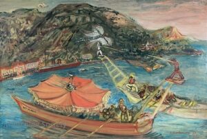 ![]() | Seaport | 65x100 | Oil on canvas | bottom left | 1989 - Di Veroli,Lorenzelli and Veca; Abraham Mintchine, illustrated p.54 N°60 | Private collection, Israel Malab'Art Gallery, London, UK | MIN330 | landscape sea mast seaport boat small boat workers wine newspaper logs storage | ||