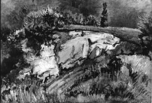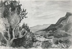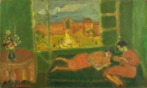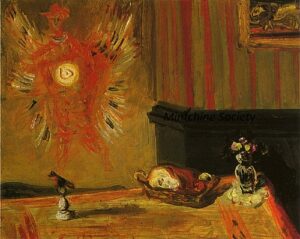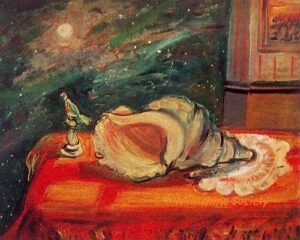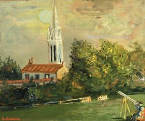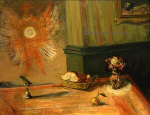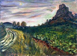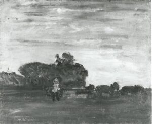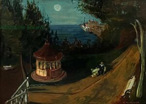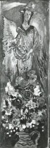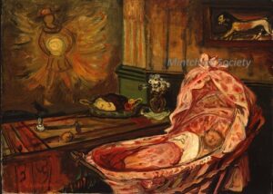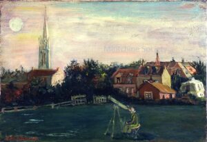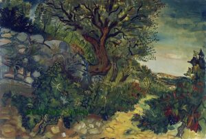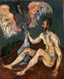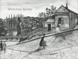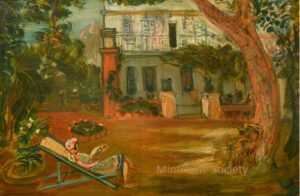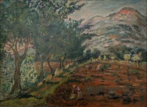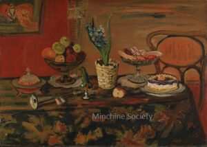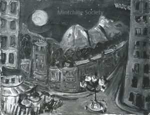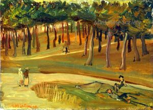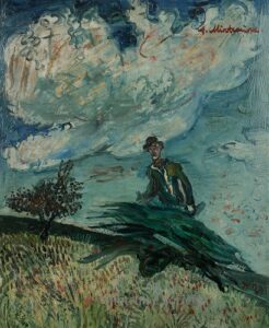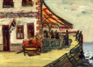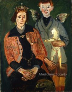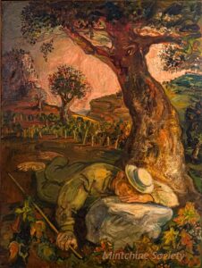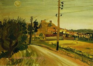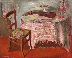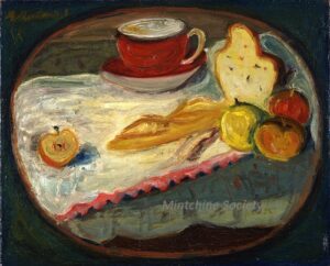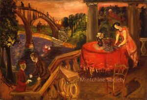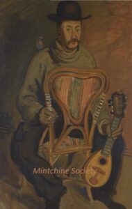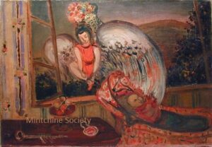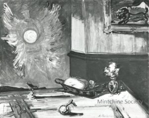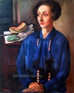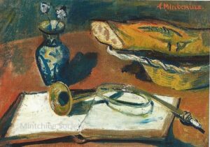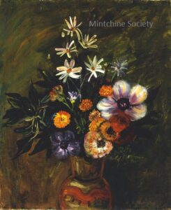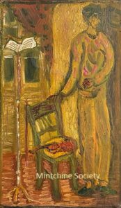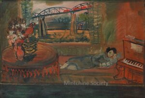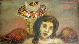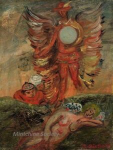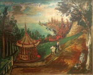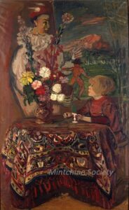 Apart from these early examples, all known Mintchine’s artwork is figurative. Paintings have been loosely categorised as “Portrait“, “Angel“, “Interior“, “Landscape” and “Still life“. Landscapes were further ordered as countryside landscapes, urban landscapes and seascapes. As mentioned in the introduction, the reader should not see these classifications as something rigid, but rather as an initial association which can be extended in a number of ways.