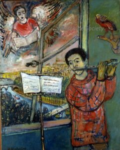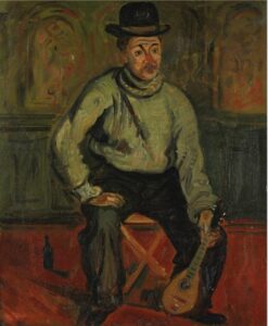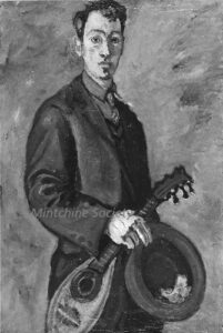 ![]() | Self-portrait with mandolin | 81x54 | Oil on canvas | top right | 1999 - "Abraham Mintchine" retrospective Mané Katz Museum Haifa, Israel, N°54 Group exhibition 1990 - "Chagall to Kitaj, Jewish Experience in 20th Century Art", Lund Humphries, London, UK, in association with Barbican Art Gallery, illustrated p.77 N°61 | 1963 - Chil Aronson, Scènes et visages de Montparnasse, preamble of Marc Chagall, illustrated p.295 1981 - Di Veroli and Testori, Abraham Mintchine, illustrated p.93 N°154, Ed.Giorgio Mondadori 1986 - Paolo Levi, Arte, Mensile di arte, cultura e informazione N°164, "Il Mistero di Abraham Mintchine, il genio dimenticato", illustrated p.48 | Galerie Manteau, Paris, France Israel Museum, Jerusalem, Israel | MIN347 | self-portrait man artist mintchine music instrument mandolin busker street musician hat money jacket shirt tie | |
