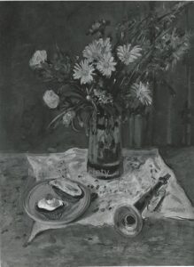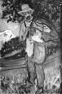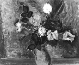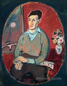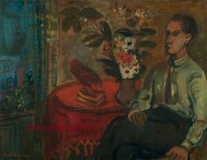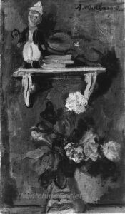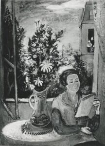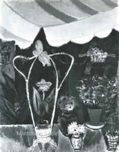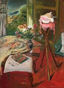 ![]() | Self-portrait at the easel | 24x41 | Oil on canvas | top right | 1986 - "Mintchine", Régine's Gallery, Rome, Italy p.3, illustrated 1989 - "Mintchine", Galleria lorenzelli, Bergame, Italy | Galerie Alef, Paris, France Galerie Di Veroli, Paris, France Private collection, Versailles, France | MIN068 | self-portrait easel paint canvas flower vase chair colours brush painting pigment oil | ||