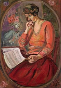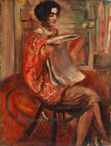 ![]() | Portrait of a woman | 35x27 | Oil on canvas | top right | painted 1926 | 1981 - Di Veroli and Testori, Abraham Mintchine, illustrated p.16 N°7 Ed.Giorgio Mondadori | Private collection,Israel | MIN232 | portrait woman red dress sitting reading newspaper | |