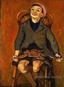 ![]() | Master Cloots (son of Mrs.Manteau) | 100x65 | Oil on canvas | top right | 2000 - "Abraham Mintchine" retrospective Musée du Montparnasse Paris, France | 1981 - Di Veroli and Testori, Abraham Mintchine, illustrated p.133 N°205, Ed.Giorgio Mondadori | Tiroche, Tel-Aviv, Israel Galerie Di Veroli, Paris, France Private collection, Paris, France | MIN165 | Portrait boy teenager Cloots Manteau standing stuffed bird jumper sweater pullover shirt tie chair table | |