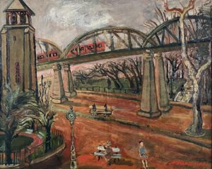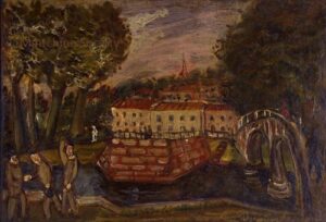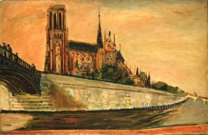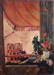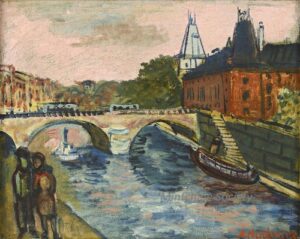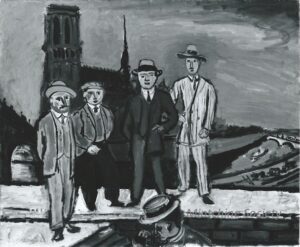 ![]() | Friends of the artist in front of Notre Dame | 80x54 | Oil on board | bottom left | Private collection, Israel | MIN425 | group portrait men hat suit jacket standing river Seine bay bridge Notre Dame Paris | |||