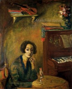 ![]() | At home with Madame Mintchine | 81x65 | Oil on canvas | top right | 1989 - "Mintchine", Galleria Lorenzelli, Bergame, Italy 2004 - "Mintchine, l'angelo perduto di Montparnasse", Galleria Michelangelo, Bergame, Italy, illustrated p.21 2012 - "Mintchine - Portraits", Galerie Di Veroli, Paris, France 2015 - "Mintchine - Oeuvres Choisies", Galerie Di Veroli, Paris, France | 1981 - Di Veroli and Testori, Abraham Mintchine, illustrated p.77, N°127 , Ed.Giorgio Mondadori 2004 - Dimitry Levenson, Our Heritage, monthly art magazine N°69, Moscow, (journal in Russian), illustrated p.144 2012 - Paolo Levi, Effetto Arte-periodico bimestrale d'arte e cultura-anno 2 n°1, illustrated p.17 | Galleria Lorenzelli, Bergame, Italy Private collection, Paris, France | MIN024 | interior instrument wife portrait stuffed bird piano pianoforte violin score Sheet Music candlestick book flower chair table home interior | |