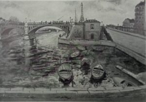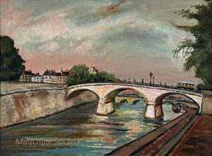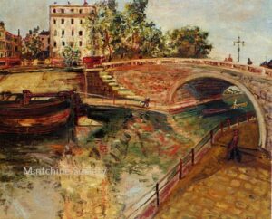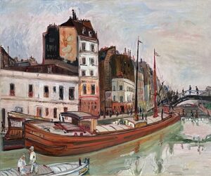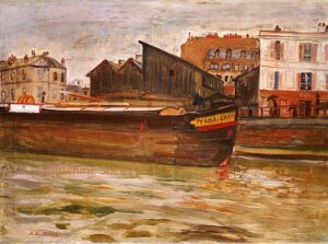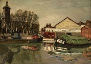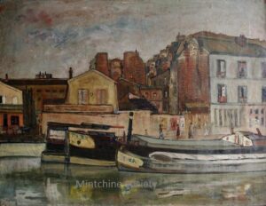 ![]() | Canal St. Martin in Paris | 73x92 | Oil on canvas | Bottom right | Private collection | MIN456 | canal boat paris urban landscape houses building people stroll walk water day | |||