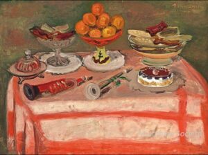 ![]() | Table with fish | 33x55 | Oil on canvas | bottom right | 1981 - Di Veroli and Testori, Abraham Mintchine, illustrated p.14 N°4 Ed.Giorgio Mondadori | Private collection, Israel | MIN228 | table drawer fish knife smoking pipe china recipient | ||