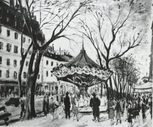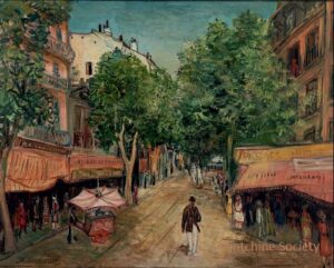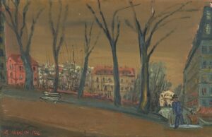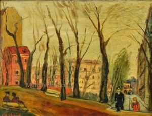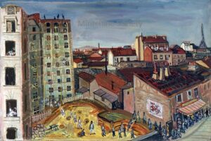 ![]() | View of Paris | 55x33 | Oil on canvas | bottom right | Private collection, Israel | MIN391 | urban landscape passers-by pavement street building Paris tees | |||