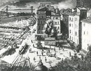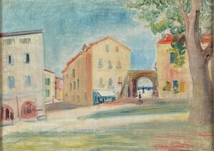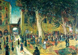 ![]() | Rue de Lorgues in Toulon | 65x81 | Oil on canvas | bottom left | Private collection, France | MIN411 | uban landscape Provence Toulon Lorgues street passer-by ice cream seller parasol awning canopy trees building shops balcony view sea boat | |||