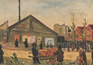 ![]() | Montmartre | 55x46 | Oil on canvas | bottom | Private collection, Israel | MIN417 | urban landscape Montmartre Paris passers-by buiding café shops awning canopy passers-by | |||