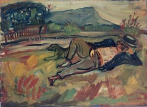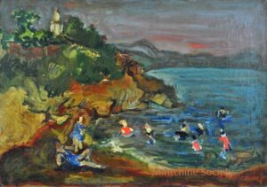 ![]() | The bathers | 33x41 | Oil on canvas | Bottom right | Private collection, UK | MIN451 | landscape swimming swimmers bath bathers water sea sunset bushes hills | |||