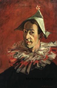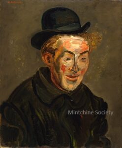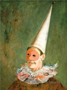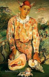 ![]() | Self-portrait as Pierrot | 73x54 | Oil on canvas | 1960 - "Mintchine", Mc Roberts and Tunnard Gallery, London, UK, N°25, illustrated Group exhibition 2012 - "The Desire for Paris", Mane Katz Museum, Haifa, Israel | 1981 - Di Veroli and Testori, Abraham Mintchine, illustrated p.132 N°200, Ed.Giorgio Mondadori | René Gimpel, Paris, France Gimpel Fils Gallery, London, UK Galerie Di Veroli, Paris, France Lucien Krieff Gallery, Jerusalem, Israel | MIN141 | Self Portrait man slavic painter artist Pierrot dressed-up ruff conical hat mask | ||