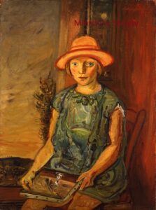![]() | Portrait of a young girl holding a painting | 81x60 | Oil on canvas | top right | René Gimpel, Paris, France Gimpel Fils Gallery, London, UK Private collection, France | MIN056 | portrait girl hat pink sitting wicker chair interior painting angel | |||