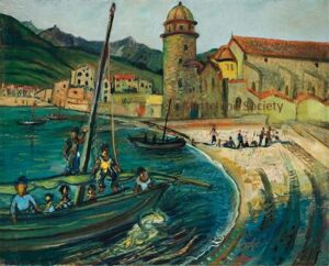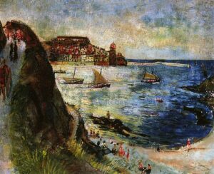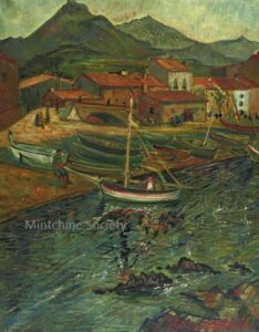 ![]() | Fishermen in Collioure | 65x100 | Oil on canvas | bottom right | 1981 - Di Veroli and Testori, Abraham Mintchine, illustrated p.53 N°81, Ed.Giorgio Mondadori | Ein Harrod Museum, Ein Harrod, Israel | MIN338 | landscape Collioure laguna boat mast fishermen town building house beach hill passers-by | ||
