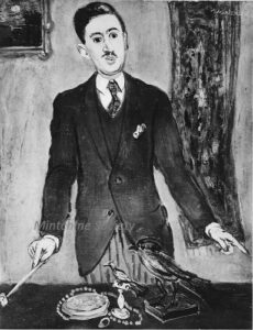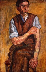![]() | Portrait of a man | 92x60 | Oil on canvas | top right | 2005 - Di Veroli, Abraham Mintchine, illustrated p.52 N°58 | René Gimpel, Paris, France Gimpel Fils Gallery, London, UK Galerie Di Veroli, Paris, France Private collection, Versailles, France | MIN159 | Three quarter Portrait man sitting chair shirt rolled up sleeves waistcoat | ||