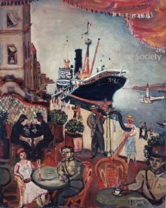 ![]() | Departure for Corsica | 46x38 | Oil on canvas | Vladimir Bashkirov Private collection, Israel | MIN403 | Landscape boat dock wharf sea café chair sitting drinking military awning canopy musician harpe violin passers-by building travellers departure Corsica | ||||