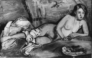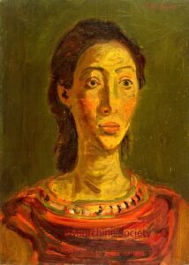 ![]() | Portrait with vase of flowers | Oil on canvas | top right | dated 28 (1928) | 1981 - Di Veroli and Testori, Abraham Mintchine, illustrated p.51 N°72, Ed.Giorgio Mondadori | Private collection, Israel | MIN295 | portrait woman holding vase flower table window hill | ||