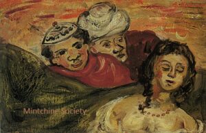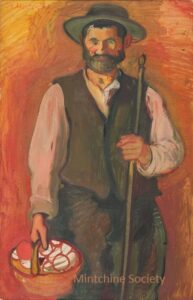 ![]() | The peddler | 55x46 | Oil on canvas | top right | 1986 - "Mintchine", Régine's Gallery, Rome, Italie, illustrated p.7 1989 - "Mintchine",Galleria Lorenzelli, Bergame, Italy, illustrated board IV p.23 1999 - "Abraham Mintchine" retrospective, Mané Katz Museum, Haifa, Israel, N°43 | Galerie Alef, Paris, France Galerie Di Veroli, Paris, France Private collection, Rome, Italy | MIN174 | Peddler hat bundle burden man portrait traveling | ||