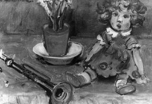 ![]() | Doll, trumpet and vase | 33x46 | Oil on canvas | top left | 2005 - Di Veroli, Abraham Mintchine, illustrated p.71 N°93 | Private collection | MIN226 | still life doll trumpet vase flower table | ||