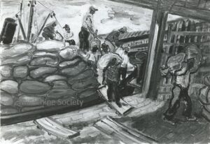 ![]() | Loading dock workers | 38x55 | Oil on canvas | bottom right | 1999 - "Abraham Mintchine" retrospective, Mané Katz Museum, Haifa, Israel, N°56 | 1981 - Di Veroli and Testori, Abraham Mintchine, illustrated p.95 N°158 Ed.Giorgio Mondadori | Tel-Aviv Museum, Tel -Aviv, Israel | MIN240 | Loading dock worker porter barge boat plank warehouse mast bags | |