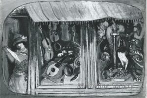 ![]() | Composition with harlequin and musical instrument | 84x36 | Oil on panel | bottom left | Private collection, Israel | MIN427 | composition harlequin puppet music score sheet instrument trumpet violin | |||