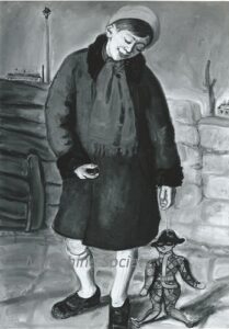 ![]() | Child and eagle | 92x65 | Oil on canvas | top right | 1989 - Di Veroli, Lorenzelli and Veca; Abraham Mintchine, illustrated p.36 N°23 | Private collection, Milan, Italy | MIN277 | child smiling happy holding stuffed bird eagle | ||