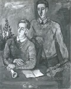 ![]() | The musicians | 92x73 | Oil on canvas | top right | 1981 - Di Veroli and Testori, Abraham Mintchine, illustrated p.81 N°129, Ed.Giorgio Mondadori | Tiroche, Tel-Aviv, Israel Private collection | MIN258 | portrait men man musician music sheet instrument violin bow trumpet pullover shirt tie tree table tablecloth | ||