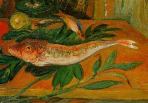 ![]() | The red mullet | 38x46 | Oil on canvas | 1989 - Di Veroli, Lorenzelli and Veca; Abraham Mintchine, illustrated p.27 N°5 | Private collection | MIN264 | still life fish vegetable table | |||