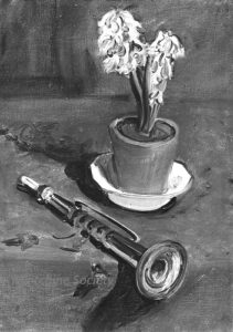 ![]() | Flowers and trumpet | 46x33 | Oil on canvas | 1981 - Di Veroli and Testori, Abraham Mintchine, illustrated p.143 N°217, Ed.Giorgio Mondadori | Tiroche, Tel-Aviv, Israel Private collection | MIN270 | still life musical instrument trumpet pot flower | |||
