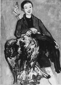![]() | Mrs.Manteau of Bruxelles's daughter | 81x60 | Oil on canvas | dated 29 (1929) | 2009 - "Abraham Mintchine" retrospective, Musée du Donjon, Niort, France, illustrated N°14 | 2005 - Di Veroli, Abraham Mintchine, illustrated p.49 N°52, Ed.Galerie Di Veroli | Private collection, London, UK Galerie Di Veroli, Paris, France Private collection, Paris, France | MIN156 | Portrait girl Manteau hat turquoise dress sitting chair holding painting stuffed bird window tree view | |