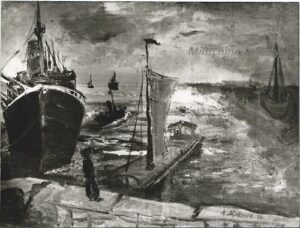 ![]() | The sea port | 73x92 | Oil on canvas | Group exhibition 1985 - "De la Bible a nos jours", Grand Palais, Paris, France, illustrated | 1981 - 629 oeuvres de Renoir à Picasso, illustrated p.89, Ed.du Petit Palais de Genève 2005 - Di Veroli, Abraham Mintchine, illustrated p.38 N°30, Ed.Galerie Di Veroli | Musée du Petit Palais, Genève, Switzerland Galerie Di Veroli, Paris, France Private collection, Israel | MIN146 | Landscape boat sailor cloud town sea port | ||