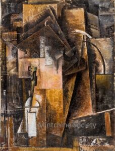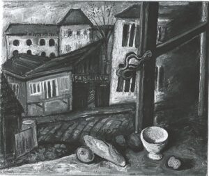 This section covers known oils (on canvas, board or other support) by Abraham Mintchine. The catalogue starts with two abstract compositions known from the artist. They are conserved in the Tomsk and Rostov national museums. To this day no other examples are known. Other paintings in a similar style were exhibited in Berlin in 1925 but these have now been lost (likely destructed). These compositions are the earliest paintings known from the artist which is why we have decided to place it ahead of the more representative work that follows.