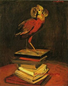 ![]() | Stuffed bird on books | 61x50 | Oil on canvas | top right | 2005 - Di Veroli, Abraham Mintchine, illustrated p.58 N°67 | Private collection | MIN321 | still life stuffed bird books | ||