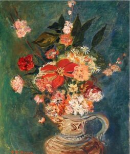 ![]() | Vase of flowers | 55x46 | Oil on canvas | top right | René Gimpel, Paris, France Gimpel Fils Gallery, London, UK Galerie Di Veroli, Paris, France Private collection, Paris, France | MIN192 | still life vase jug flower marguerite table window view hill | |||