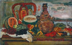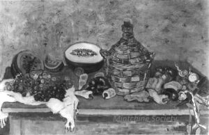 ![]() | Still life | 38x61 | Oil on canvas | top left | 1989 - Di Veroli, Lorenzelli and Veca; Abraham Mintchine, illustrated p.27 N°6 | Private collection, Tel-Aviv, Israel | MIN497 | still life table grapes chair melon watermelon pepper garlic woven wicker bottle | ||