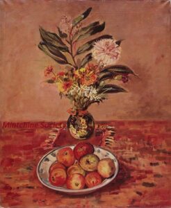 ![]() | Still life | 55x38 | Oil on canvas | bottom right | 1981 - Di Veroli and Testori, Abraham Mintchine, illustrated p.119 N°180 , Ed.Giorgio Mondadori | Private collection, Italy | MIN377 | still life vase flower fruit plate | ||