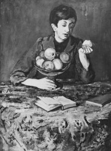 ![]() | Portrait of a boy | 61x38 | Oil on canvas | top left | 1981 - Di Veroli and Testori, Abraham Mintchine, illustrated p.75 N°123, Ed.Giorgio Mondadori | Mehler, Tel-Aviv, Israel | MIN319 | portrait boy beret scarf coat | ||