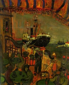 ![]() | Workers at the port | 72x93 | Oil on canvas | bottom left | 1999 - "Abraham Mintchine" retrospective Mané Katz Museum Haifa, Israel, N°10 | 1981 - Di Veroli and Testori, Abraham Mintchine, illustrated p.50 N°71, Ed.Giorgio Mondadori | Ein Harrod Museum, Ein Harrod, Israel | MIN339 | Loading dock timber worker porter boat plank warehouse mast bags café men drinking talking | |