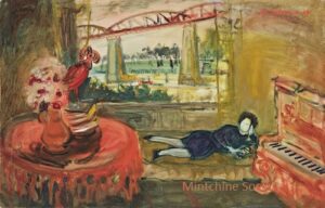 ![]() | Man with mandolin | 100x65 | Oil on canvas | top right | 1963 - Chil Aronson, Scènes et visages de Montparnasse, preamble of Marc Chagall, illustrated p.297 2005 - Di Veroli, Abraham Mintchine, illustrated p.69 N°91 | Galerie Manteau, Paris, France Private collection | MIN336 | portrait man music musical instrument mandolin sitting astride wicker chair hat parrot cigarette smoking | ||