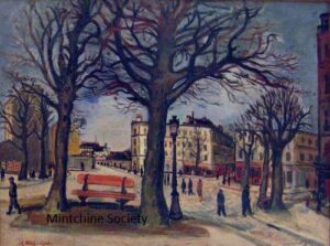 ![]() | Place d'Alleray, Paris | 46x65 | Oil on canvas | Bottom left | Private collection, London, UK | MIN440 | urban landscape view square Place d'Alleray Paris trees bench lamp passe-by road building shops winter | |||