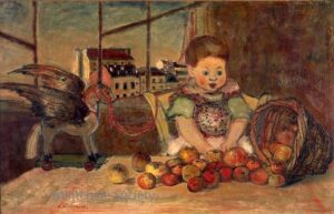 ![]() | Portrait of a child | 73x60 | Oil on canvas | bottom centre | dated bottom centre 28 (1928) | 1981 - Di Veroli and Testori, Abraham Mintchine, illustrated p.75 N°125, Ed.Giorgio Mondadori | Private collection | MIN342 | portrait child apron hat sitting smiling window | |
