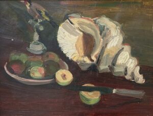 ![]() | Still life with shell | 27x35 | Oil on canvas | top right | Private collection, Paris, France | MIN517 | still life shellfish plate apple knife stuffed bird | |||